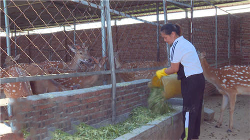 為了保證梅花鹿的質量,李艷娟采取原生態(tài)喂養(yǎng)的方式,喂養(yǎng)玉米稈、牧草等。同時,她還專門聘請了村里兩名貧困群眾,負責照料這群梅花鹿。