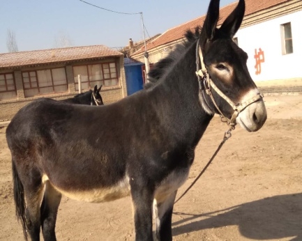 晉南驢,產(chǎn)于山西南部,以夏縣、聞喜兩縣為中心產(chǎn)區(qū)。包括平陸、芮城、永濟(jì)、臨猗等縣市及臨汾南部各縣市。體格高大,頭頸高昂,耳大而長(zhǎng),鬐甲稍低,背部平直,四肢端正。毛色以黑色并帶有“三白”(兩眼圈白、嘴頭白、肚皮白)為特征。晉南驢8~12個(gè)月有發(fā)情表現(xiàn),初配年齡為2.5~3歲,發(fā)情周期平均為22天,發(fā)情持續(xù)期為4~8天,妊娠期為12個(gè)月,母驢以3~10歲生育能力最強(qiáng)。晉南驢產(chǎn)肉性能較好,幼駒生長(zhǎng)發(fā)育較快,1歲以?xún)?nèi)發(fā)育更快,1歲時(shí)體高可達(dá)成年體高的90%左右。