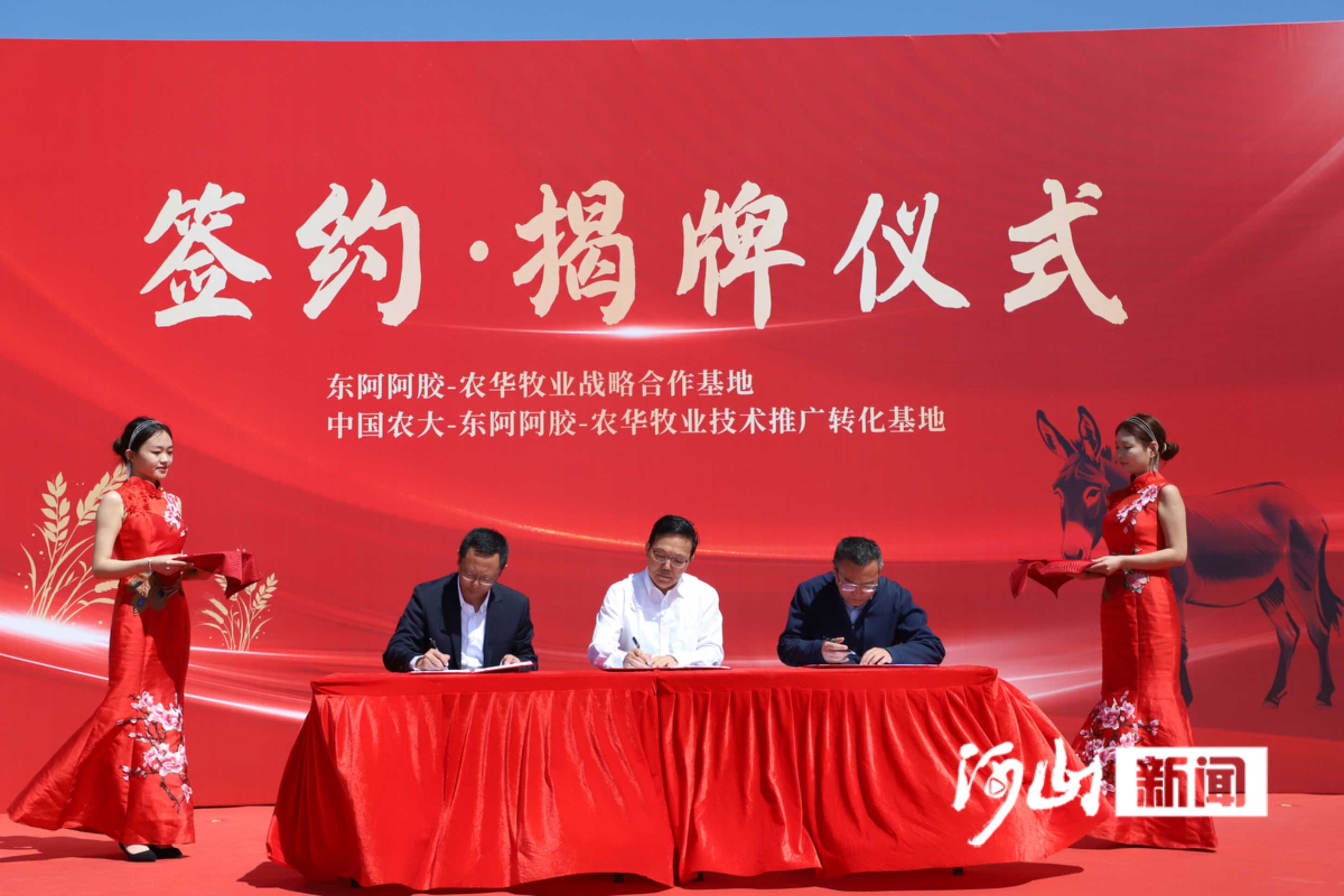 4月27日,“東阿阿膠-農(nóng)華牧業(yè)戰(zhàn)略合作基地”“中國農(nóng)大-東阿阿膠-農(nóng)華牧業(yè)技術(shù)推廣轉(zhuǎn)化基地”在張家口農(nóng)華牧業(yè)有限公司(北方驢業(yè)聯(lián)席會(huì)首批發(fā)起單位)陽原驢種驢繁育及育肥基地揭牌。