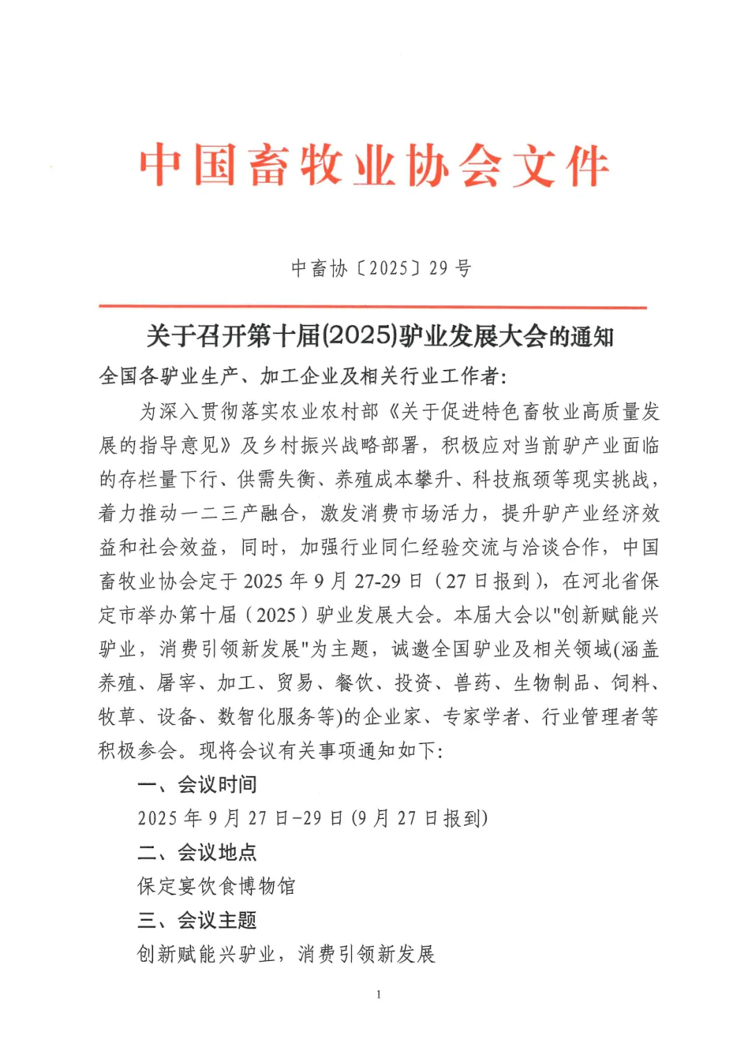 第十屆(2025)驢業(yè)發(fā)展大會 紅頭文件