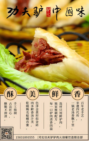 功夫驢驢肉火燒,不僅是味覺(jué)的享受,更是文化的傳承。在百年老店與匠心工藝的交匯處,它正以“舌尖上的文化IP”姿態(tài),書(shū)寫(xiě)中國(guó)飲食文化的經(jīng)典篇章。