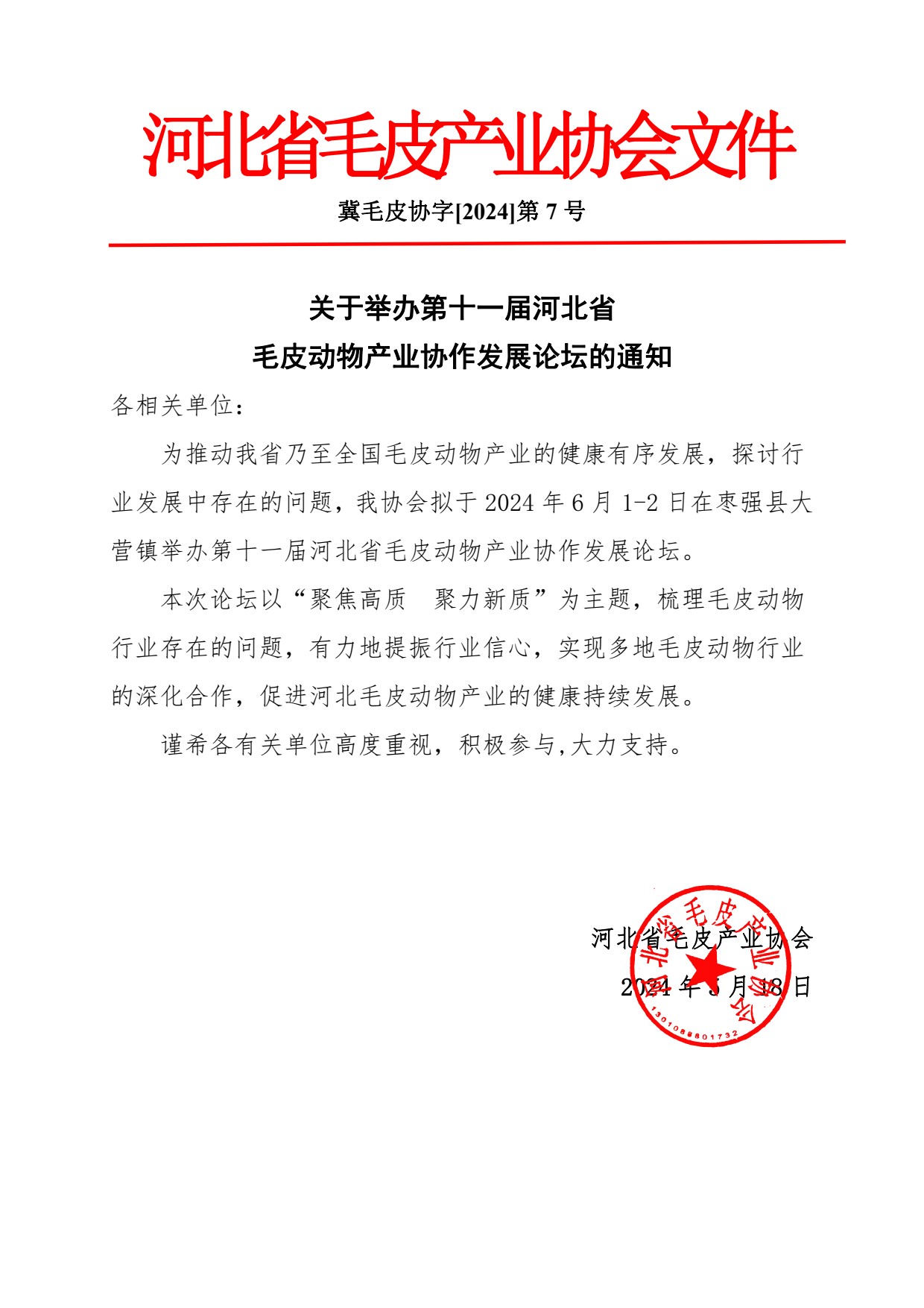 關(guān)于舉辦第十一屆河北省毛皮動(dòng)物產(chǎn)業(yè)協(xié)作發(fā)展論壇的通知