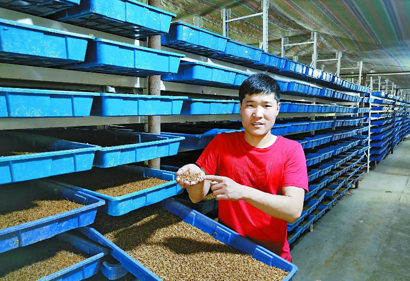 觀察昆蟲(chóng)生長(zhǎng)狀況,調(diào)節(jié)合適的溫度、濕度,定時(shí)定量喂食……一大早,29歲的張廣杰就在新疆農(nóng)業(yè)大學(xué)駐瑪納斯縣科研基地的昆蟲(chóng)養(yǎng)殖車間里忙碌起來(lái)。