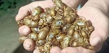 眼下,正是金蟬破土而出大量上市的時節(jié)。在河南省周口市太康縣清集鎮(zhèn)郎城鋪村的金蟬養(yǎng)殖基地,經(jīng)過兩年多的精心繁育,村民劉天領(lǐng)終于在今年夏天迎來了金蟬的收獲期?! ?月2