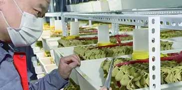 大棚內(nèi),一排排生產(chǎn)架整齊排列;養(yǎng)殖盒里,金燦燦的面包蟲正在麥麩間翻爬覓食。經(jīng)過分揀、烘干、包裝后,這些“小金蟲”將漂洋過海銷至海外……山東省