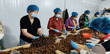 近日,河南省駐馬店市泌陽縣郭集鎮(zhèn)西馬莊村的綠色家園金蟬合作社里一片熱鬧景象,數(shù)十名村民圍坐在一起,熟練地將剛出土的金蟬穿成一串串,金黃的蟬蟲在手中流轉(zhuǎn),空氣中彌漫著豐