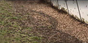 走進(jìn)河北省保定市阜平縣王林口鎮(zhèn)前辛莊螞蚱養(yǎng)殖基地,一排排養(yǎng)殖大棚格外引人注目。大棚內(nèi)密密麻麻的螞蚱四處飛舞,忙著覓食,養(yǎng)殖負(fù)責(zé)人顧淑芳正忙著給螞蚱大棚通風(fēng)、噴水。