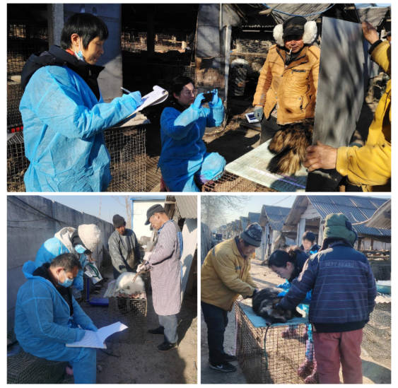 在毛皮動物繁育崗崗位專家任二軍研究員的安排指導下,團隊一行根據(jù)制定的貉品種選育方案及生產(chǎn)性能評估指標,對育種核心群逐只測量體長、體重、胸圍、腹圍、尾長、針毛長、絨毛長等指標,并對毛色、產(chǎn)絨量、生殖器官發(fā)育情況等進行綜合評估。根據(jù)生產(chǎn)性能測定結(jié)果,團隊一行針對養(yǎng)殖場年度選種工作提供了有效的科學指導,為進一步開展貉品種選育工作提供了堅實的理論數(shù)據(jù)。