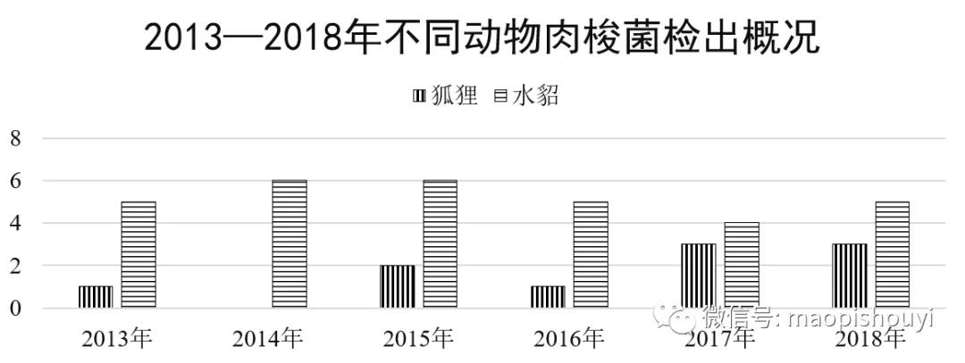 圖2. 2013年—2018年不同動物肉毒梭菌檢測概況