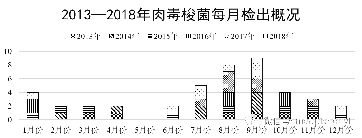 圖1.2013-2018年肉毒梭菌每月檢出概況