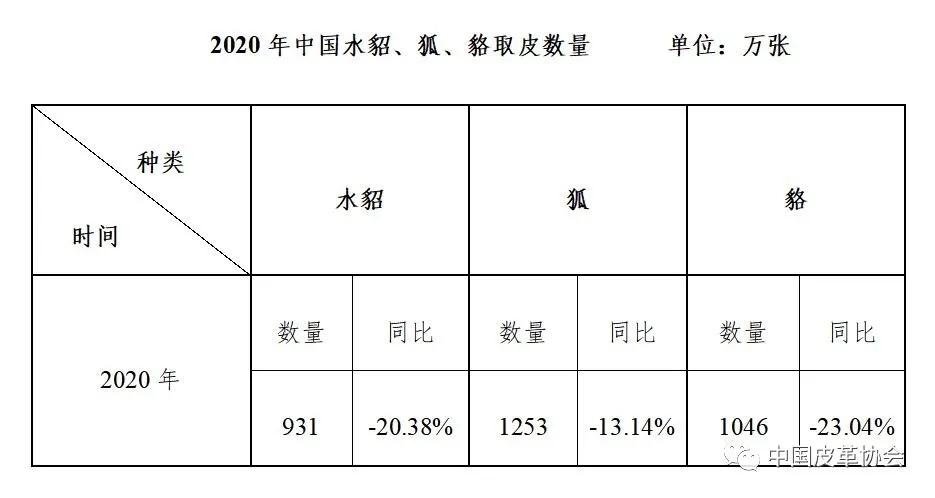 中國水貂、狐、貉取皮數(shù)量統(tǒng)計報告(2020年)