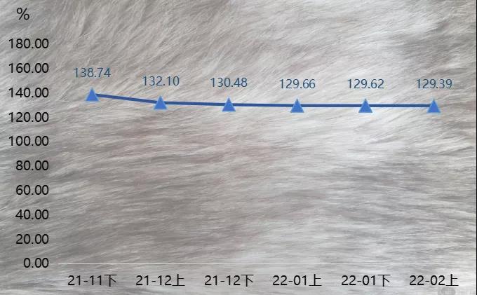 2022年2月上半月,由于春節(jié)假期影響,裘皮市場(chǎng)交易時(shí)間減少。數(shù)據(jù)顯示,裘皮產(chǎn)品價(jià)格指數(shù)穩(wěn)中略跌,具體指數(shù)運(yùn)行情況如圖所示: