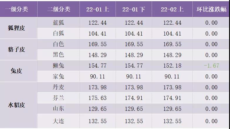 2月上半月,裘皮產(chǎn)品價(jià)格指數(shù)穩(wěn)中略跌