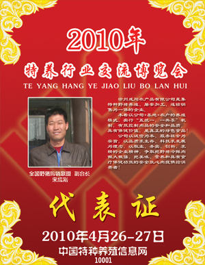 上面是2010年特養(yǎng)行業(yè)交流博覽會代表證,請企業(yè)提供相關(guān)資料支持會務(wù)工作,謝謝!