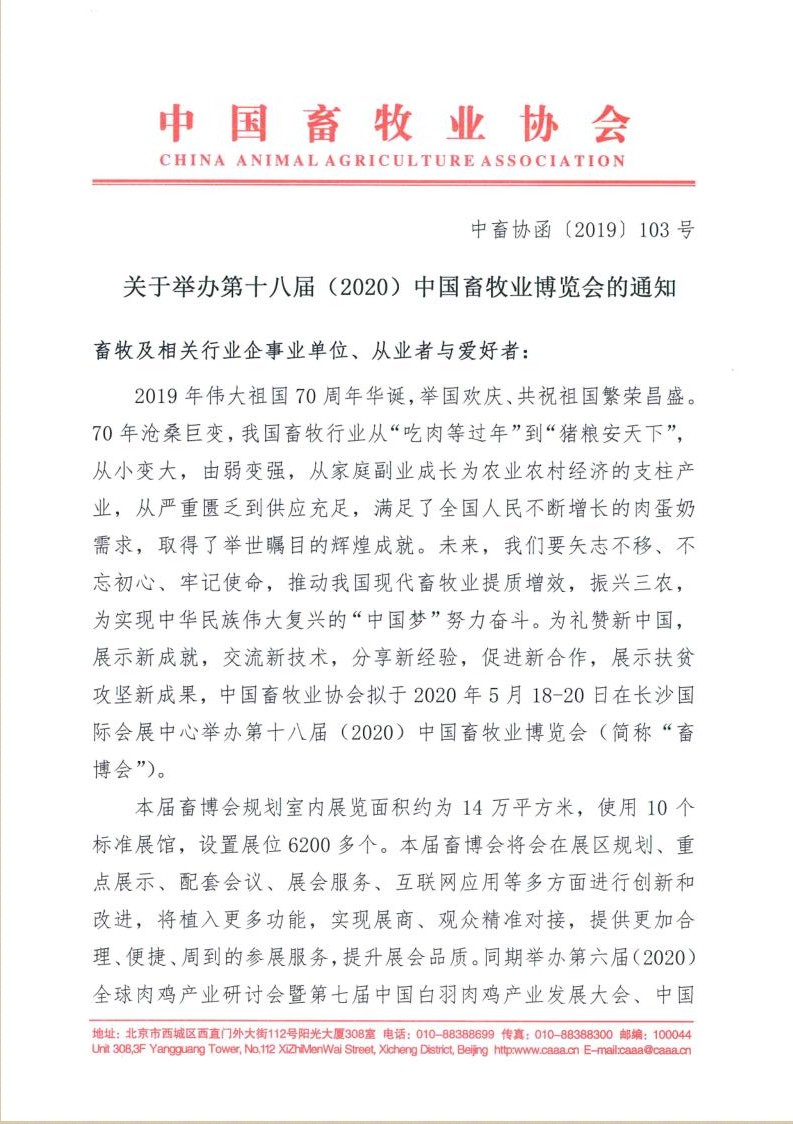 關(guān)于舉辦第十八屆(2020)中國畜牧業(yè)博覽會的通知