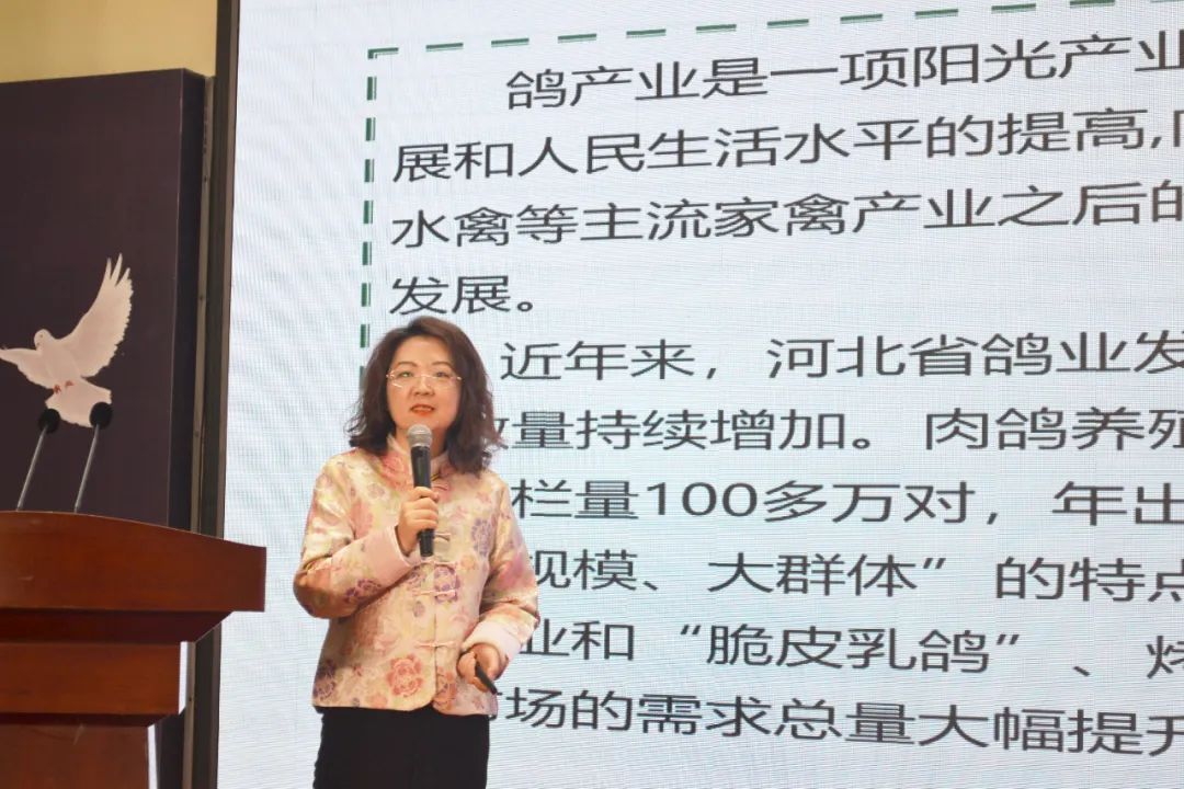 辛集農業(yè)農村局副局長肖亞彬致辭中,詳細介紹了辛集鴿產業(yè)發(fā)展情況,提到辛集市鴿業(yè)具備良好的發(fā)展態(tài)勢,近年來養(yǎng)殖規(guī)模逐漸擴大,肉鴿市場前景廣闊。