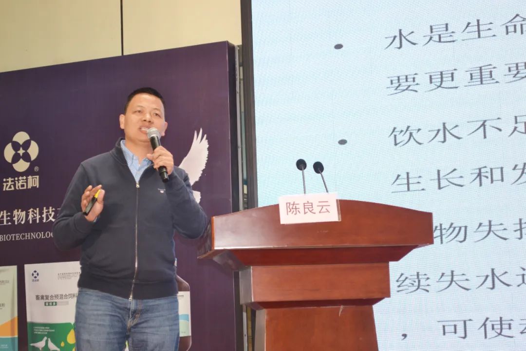 在科技成果發(fā)布環(huán)節(jié),石家莊塞紐信生物科技有限公司總經理陳良云分享了《肉鴿飲水健康管理》,重點介紹了水在肉鴿養(yǎng)殖中的重要性。