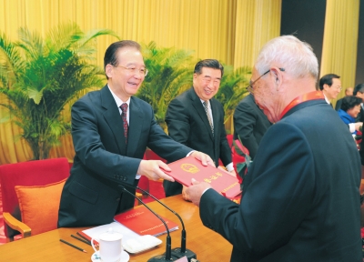 溫家寶為先進(jìn)單位和先進(jìn)個人代表頒獎 新華社記者 謝環(huán)馳 攝