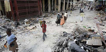 1月25日,在海地首都太子港,人們從房屋的廢墟旁經(jīng)過(guò)。世界衛(wèi)生組織官員1月26日在太子港說(shuō),1月12日海地地震已造成11.3萬(wàn)人喪生,19.6萬(wàn)人受傷?! ?月26日,在海地首都太子港,一