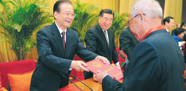 溫家寶為先進(jìn)單位和先進(jìn)個(gè)人代表頒獎(jiǎng) 新華社記者 謝環(huán)馳 攝 12月26日,國(guó)務(wù)院在北京人民大會(huì)堂隆重舉行全國(guó)糧食生產(chǎn)表彰獎(jiǎng)勵(lì)大會(huì)。中共中央政治局常委、國(guó)務(wù)院總理溫