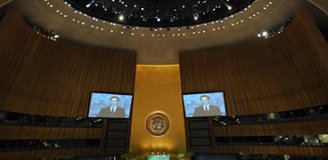 9月22日,聯(lián)合國(guó)氣候變化峰會(huì)在紐約聯(lián)合國(guó)總部舉行,國(guó)家主席胡錦濤出席峰會(huì)開(kāi)幕式。新華社記者 申宏 攝 9月22日,聯(lián)合國(guó)氣候變化峰會(huì)在紐約聯(lián)合國(guó)總部舉行,國(guó)家主席胡錦濤