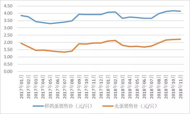 11月份,監(jiān)測企業(yè)鴿蛋均價為4.15元/只,環(huán)比略有下調,同比略有增加。參考去年同期,總的來看,鴿蛋價格同樣進入了高位運行通道。從價格水平上看,本輪鴿蛋價格也是高于往年同期的。