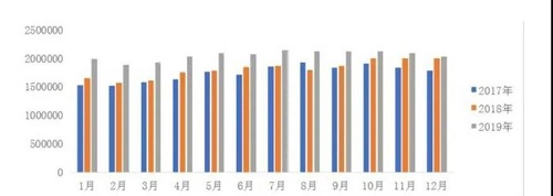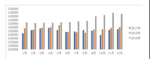 從年度趨勢看,2019年監(jiān)測企業(yè)在產(chǎn)種鴿存欄量為近三年最高,且每月均高于往年。尤其是下半年,種鴿企業(yè)均是盡可能擴產(chǎn),存欄量增長較大,至12月份,才出現(xiàn)回落跡象。