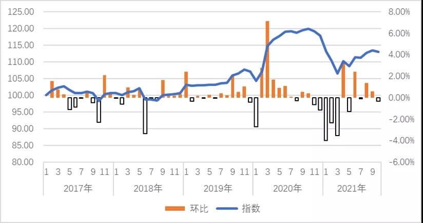 圖1 產(chǎn)鴿存欄指數(shù)(以2017年1月產(chǎn)能為100)與環(huán)比波動(dòng)