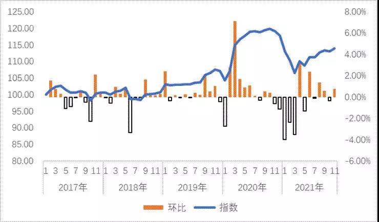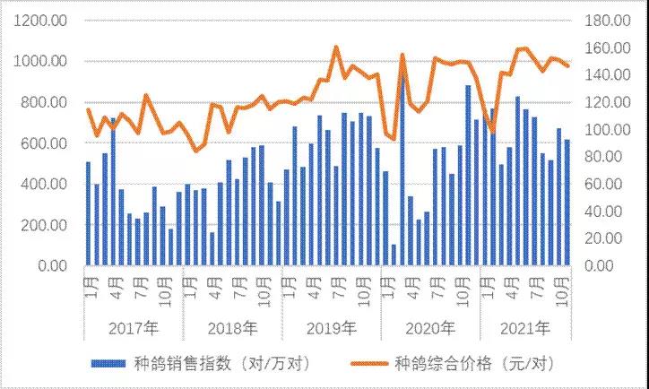 圖1 產(chǎn)鴿存欄指數(shù)(以2017年1月產(chǎn)能為100)與環(huán)比波動