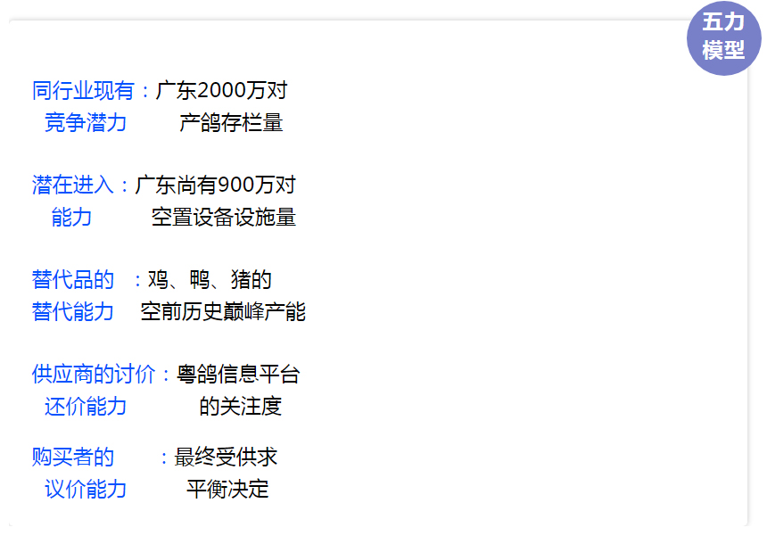 鴿業(yè)中存在決定競(jìng)爭(zhēng)規(guī)模和程度的五種力量