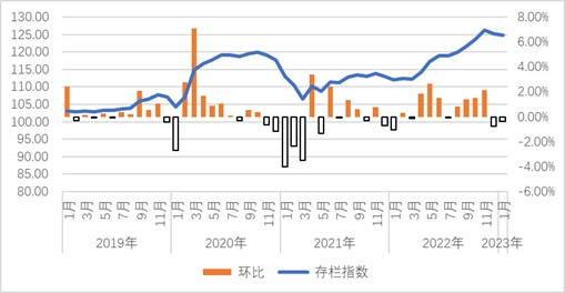 2022年1月,監(jiān)測企業(yè)種鴿存欄指數為111.96,2022年12月則增至125.14,累計上漲約12%。2023年1月下降至124.71,從月度波動指數看,為一般性調整。從結構看,1月份產能波動企業(yè)中,下調的居多,整體表現為穩(wěn)中有降的趨勢,但仍有企業(yè)產能在回調。