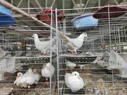 走進(jìn)養(yǎng)鴿場(chǎng),數(shù)萬(wàn)只毛色鮮亮、神態(tài)俏麗的鴿子“咕咕”地叫著。筆者發(fā)現(xiàn),鴿場(chǎng)內(nèi)鴿子所在的籠舍被分為好幾層,每層分成若干個(gè)小籠子,每個(gè)籠子里基本上都是兩只鴿子住在一起,籠子里有一個(gè)小窩,有的窩內(nèi)是鴿蛋,有的窩內(nèi)則是剛孵化出來(lái)的小鴿子,猶如一個(gè)個(gè)的小家庭,好不壯觀。