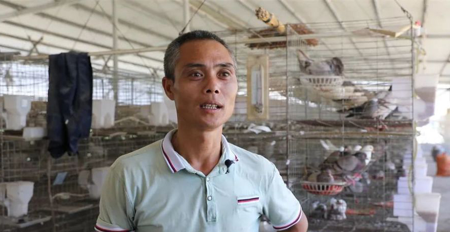 “開始我看他們養(yǎng)鴿子行情蠻好,我也跟他們在學(xué)習(xí)養(yǎng)鴿子,剛開始我養(yǎng)了有五、六百對,現(xiàn)在發(fā)展到2000多對,現(xiàn)在的家庭收入也增加了,生活水平也提高了,收入一年也有十多萬。”梅花村養(yǎng)殖戶楊云說到。
