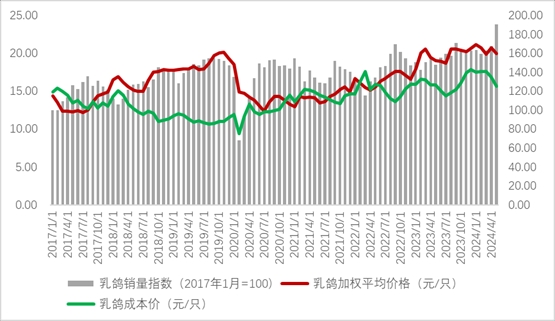 注:社會(huì)鴿存欄指數(shù)是派生指標(biāo),用來(lái)反映社會(huì)面存欄情況,該指標(biāo)尚在構(gòu)建完善當(dāng)中。