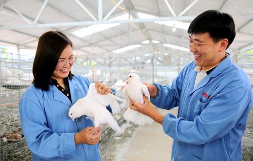 “做給農(nóng)民看,帶著農(nóng)民干,幫著農(nóng)民賺”,這是楚維向堅守的原則。從創(chuàng)業(yè)之初到如今,特別是在前幾年的脫貧攻堅戰(zhàn)中,楚維向嚴(yán)格以一名共產(chǎn)黨員和人大代表的標(biāo)準(zhǔn)要求自己,積極擔(dān)當(dāng)作為,利用自身優(yōu)勢,創(chuàng)新產(chǎn)業(yè)帶動、企業(yè)代養(yǎng)、轉(zhuǎn)移就業(yè)等多種帶貧增收模式,帶領(lǐng)全鎮(zhèn)600多戶貧困群眾靠肉鴿養(yǎng)殖走上了致富路;以養(yǎng)殖企業(yè)為龍頭,與貧困戶簽訂肉鴿養(yǎng)殖、回收協(xié)議,實行六包模式,幫助1357戶2142人脫貧增收;采用“托管代養(yǎng)”帶貧模式,即政府出資、合作社代養(yǎng)、貧困戶收益,讓210戶貧困戶“坐”享分紅,脫貧致富;陸續(xù)舉辦技能培訓(xùn)200余次,受益農(nóng)民學(xué)員上萬人。