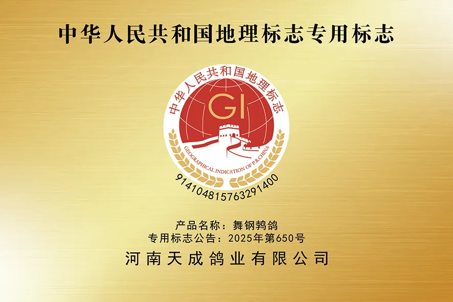 天成鴿業(yè)“舞鋼鵓鴿”入選國家地理標志保護產(chǎn)品目錄