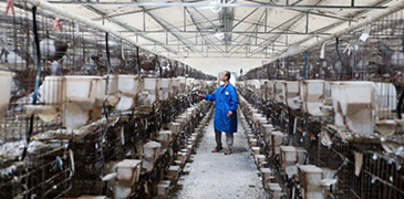 ▲7月2日,天明鴿業(yè)員工正在為肉鴿添加食料?!烀鼬潣I(yè)肉鴿培育基地一角?! 〗?jīng)過十多年的發(fā)展,河南省勞動(dòng)模范楚維向和他所創(chuàng)辦的天明鴿業(yè)成為我國肉鴿行業(yè)的知名企業(yè),企業(yè)年