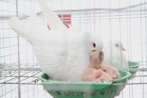 小乳鴿孵化出殼后種用白羽王鴿進(jìn)入育雛期,眾所周知鴿子屬于晚成鳥,剛剛出殼的小雛鴿,根本不能自己采食,需要親鴿分泌奶樣鴿乳,口對口喂養(yǎng)長大直到其作為商品出售的。在育雛期間公鴿和母鴿均會分泌鴿乳,共同照顧喂養(yǎng)乳鴿,為確保種鴿鴿乳分泌在此階段需加強(qiáng)車間管理,提供優(yōu)質(zhì)合理配比日糧,適當(dāng)補(bǔ)料增加日糧供給,同時補(bǔ)充維生素、礦物質(zhì)等,幫助親鴿營養(yǎng)的全面吸收,利于乳鴿的生長發(fā)育,因乳鴿出售標(biāo)準(zhǔn)不同,種鴿育雛期約3~4周。需特別注意的是:高產(chǎn)種鴿在乳鴿哺育2~3周左右后會再次進(jìn)行交配,繼而產(chǎn)下下一窩的鴿蛋,種鴿一邊孵蛋一邊哺育乳鴿,這樣的種鴿繁殖周期只有約40天左右時間。