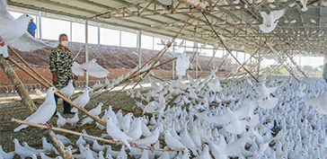 首先抓好“三降” 01降低溫度 鴿羽毛稠密,無汗腺,體內(nèi)熱量散發(fā)困難,因而高溫環(huán)境影響肉鴿的生長。 必須采取有效措施進行降溫: 1、將房頂和南側(cè)墻涂