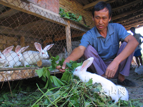 段新安發(fā)現(xiàn)肉兔好養(yǎng)上了“癮”,他把兔窩蓋成防空洞像“宮殿”似的,讓肉兔好乘涼。平時(shí)干完農(nóng)活回家順便拔點(diǎn)車前草、長(zhǎng)壽菜、蒲公英等野草,經(jīng)常采食的野草代替了獸藥,不僅營(yíng)養(yǎng)豐富,而且還具有防治疾病和促進(jìn)生長(zhǎng)的作用,可獲得“花錢少、用藥方便、療效好”的防治效果。