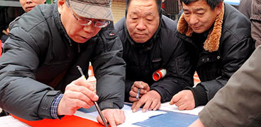 1月10日,河南省文聯(lián)的一名書法家為群眾書寫春聯(lián) 2012年1月10日,河南省文化科技衛(wèi)生“三下鄉(xiāng)”啟動儀式和集中服務活動在登封市盧店鎮(zhèn)中心廣場舉行。文化、科