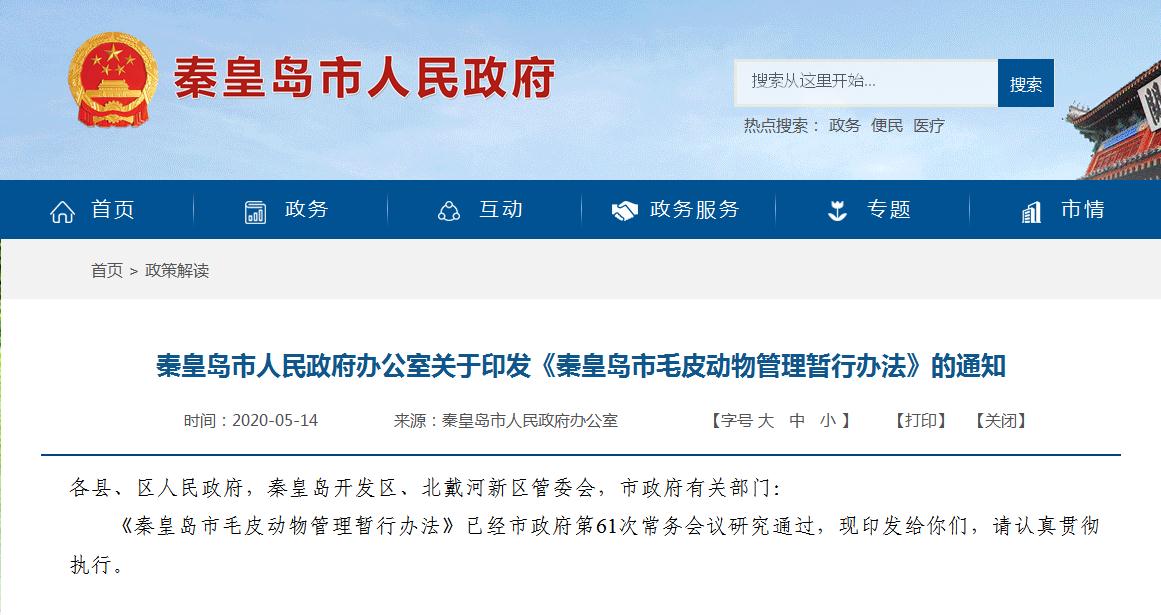 各縣、區(qū)人民政府,秦皇島開發(fā)區(qū)、北戴河新區(qū)管委會(huì),市政府有關(guān)部門: 《秦皇島市毛皮動(dòng)物管理暫行辦法》已經(jīng)市政府第61次常務(wù)會(huì)議研究通過,現(xiàn)印發(fā)給你們,請(qǐng)認(rèn)真貫徹執(zhí)行。
