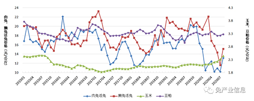 圖8 2015年1月以來活兔收購價(jià)格及飼料價(jià)格