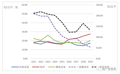 圖1 2011年—2019年兔及兔產(chǎn)品平均價(jià)格走勢