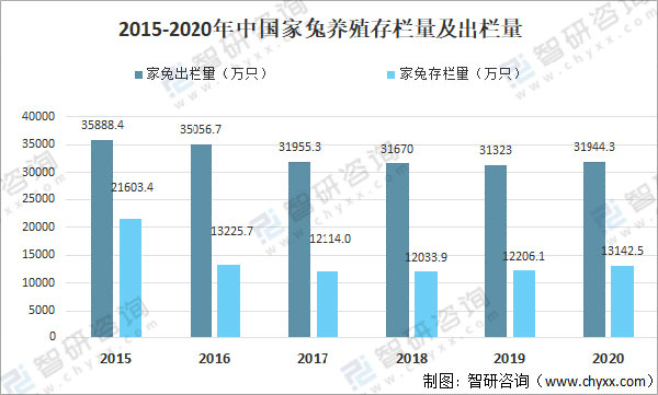 2015-2020年中國家兔養(yǎng)殖存欄量及出欄量