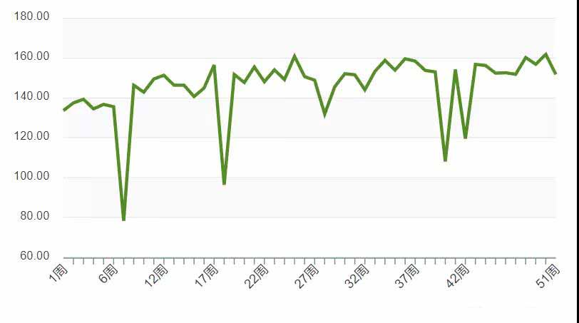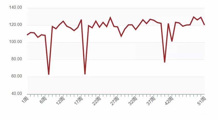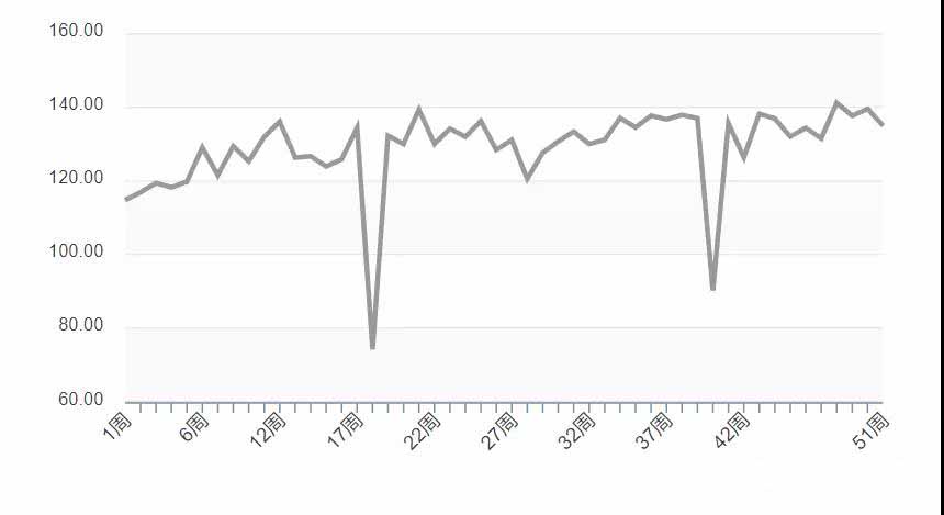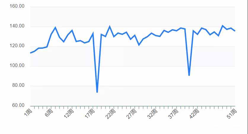 最近一周兔產(chǎn)業(yè)表現(xiàn)為135,與上周相比下降3.3%