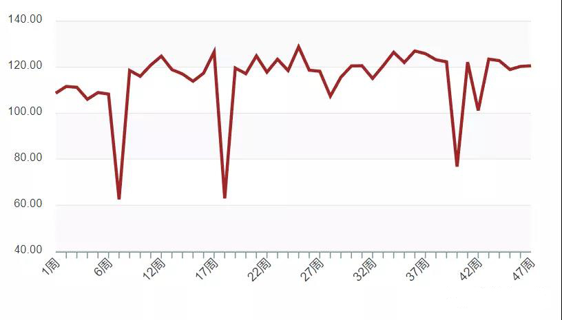 最近一周獺兔產(chǎn)業(yè)表現(xiàn)為120.65,與上周相比上升0.23%
