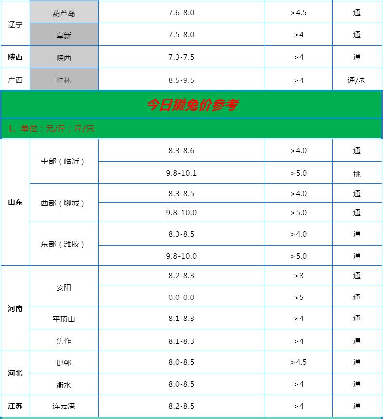 全國(guó)各地兔價(jià)行情信息快報(bào)?。?022.5.25)