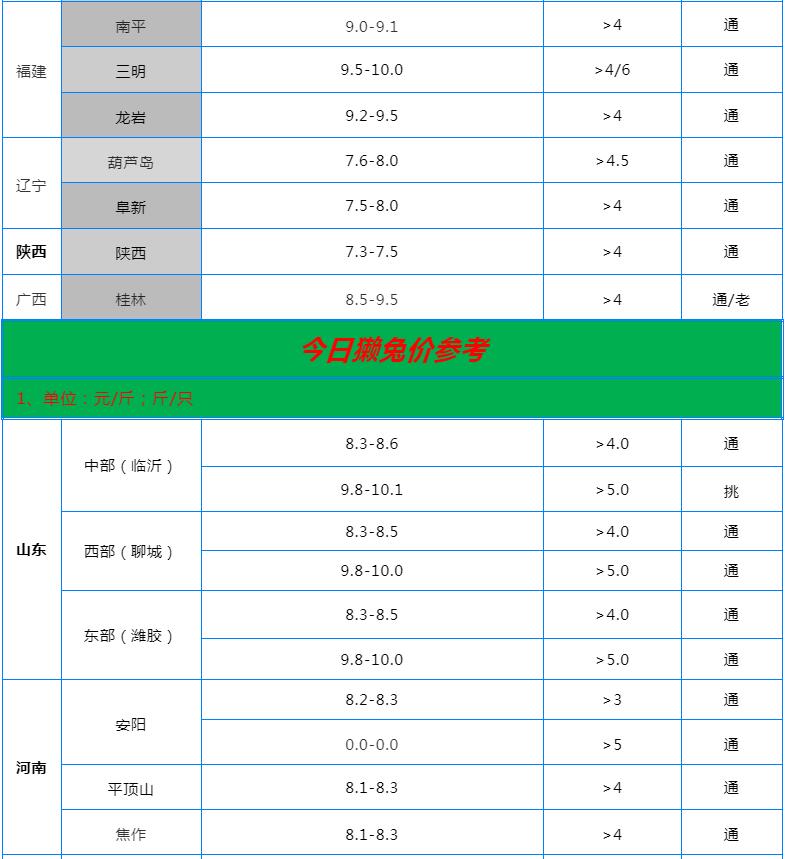 全國(guó)各地兔價(jià)行情信息快報(bào)?。?022.5.26)
