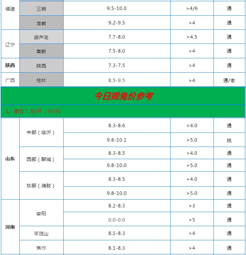 全國各地兔價行情信息快報?。?022.5.30)
